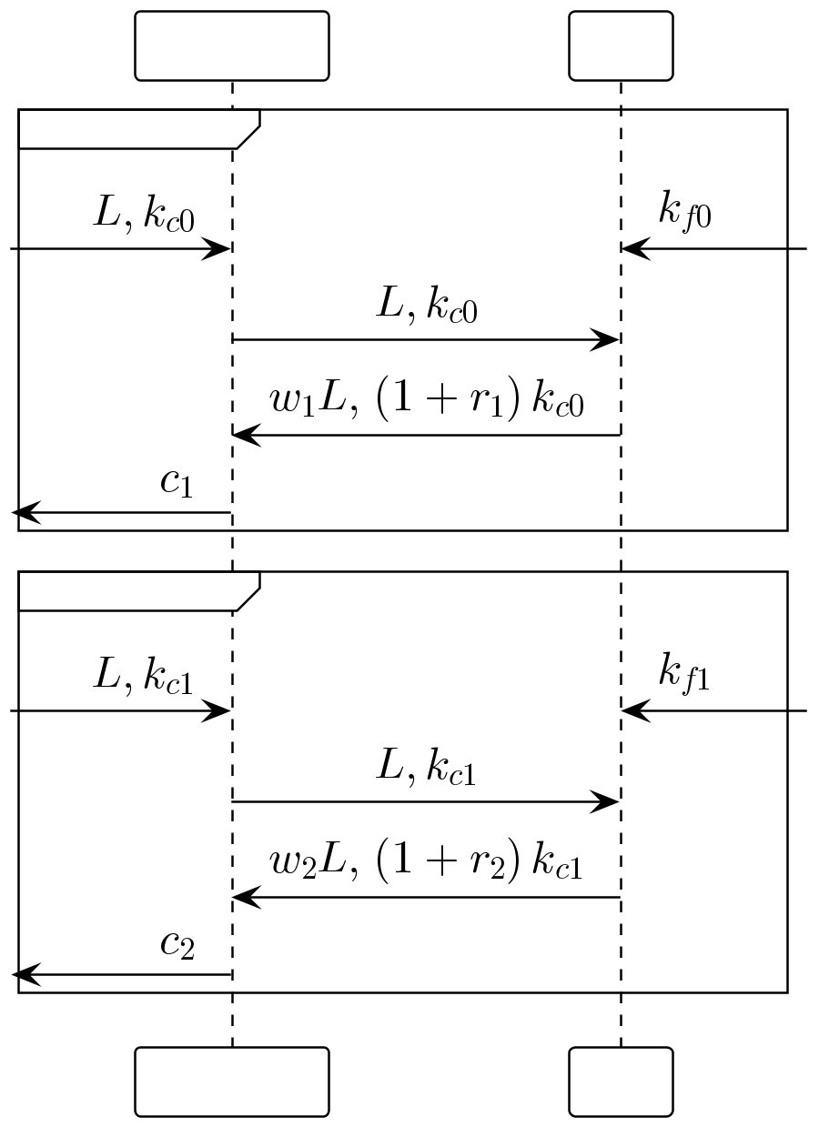 居民和企业同时持有储蓄,对于t期期初,可分别标记为 \(k_{ct}\) 以及 \(k_{ft}\) ,同时假定第1期期初储蓄总量为常量 \( k_0 \equiv k_{c0} + k_{f0}\)