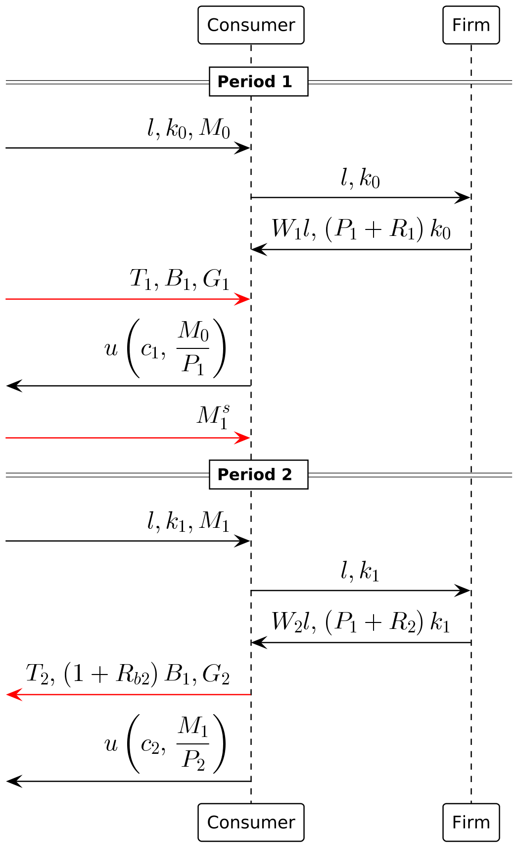 假定政府在每期进行 \(G_1, G_2\) 的政府支出/购买动作